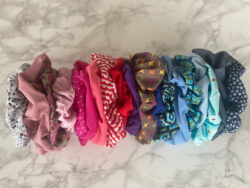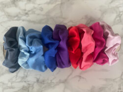Meine Scrunchies fertige ich in vielen verschiedenen Farben, Mustern und 3 verschiedenen Grössen (S, M & L) an.