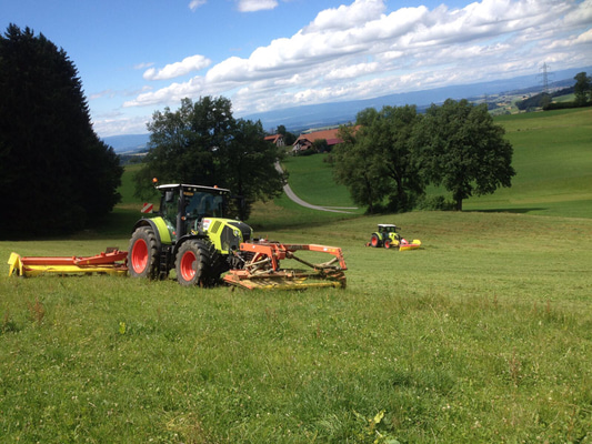 Der Betrieb umfasst eine Fläche von 50 ha. Wir bewirtschaften eine Milchviehhaltung. Die Kühe werden in einem Freilaustall gehalten und mit einem Roboter gemolken. Weiter werden auch Mastbullen gemästet und noch viele verschiedene Tiere leben auf dem Hof z.B. Schafe, Ziegen, Legehennen, Katzen und ein Hund. Wir besitzen auch eine Hühnerhalle mit 9000 Poulet. Der Ackerbau besteht aus Gerste, Triticale, Mais, Erbsen und Kartoffeln. Es werden Hochstammbäume gehalten. Im 2021 ist eine Biogasanlage in Betrieb genommen worden.