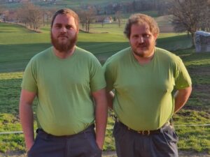 Adrian und André Kaeser bewirtschaften im Steinberg St. Antoni einen landwirtschaftsbetrieb in einer Betriebsgemeinschaft.