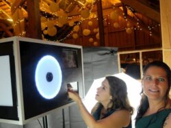 Holzkisten-Optik, Spiegelreflexkamera mit Blitz, externer Drucker (40 Ausdrucke inklusive), Boomerangs/GIFs/Videos, verschiedene Farbfilter und Bildbearbeitungsmöglichkeiten, ideal für Anlässe ab 50 Personen